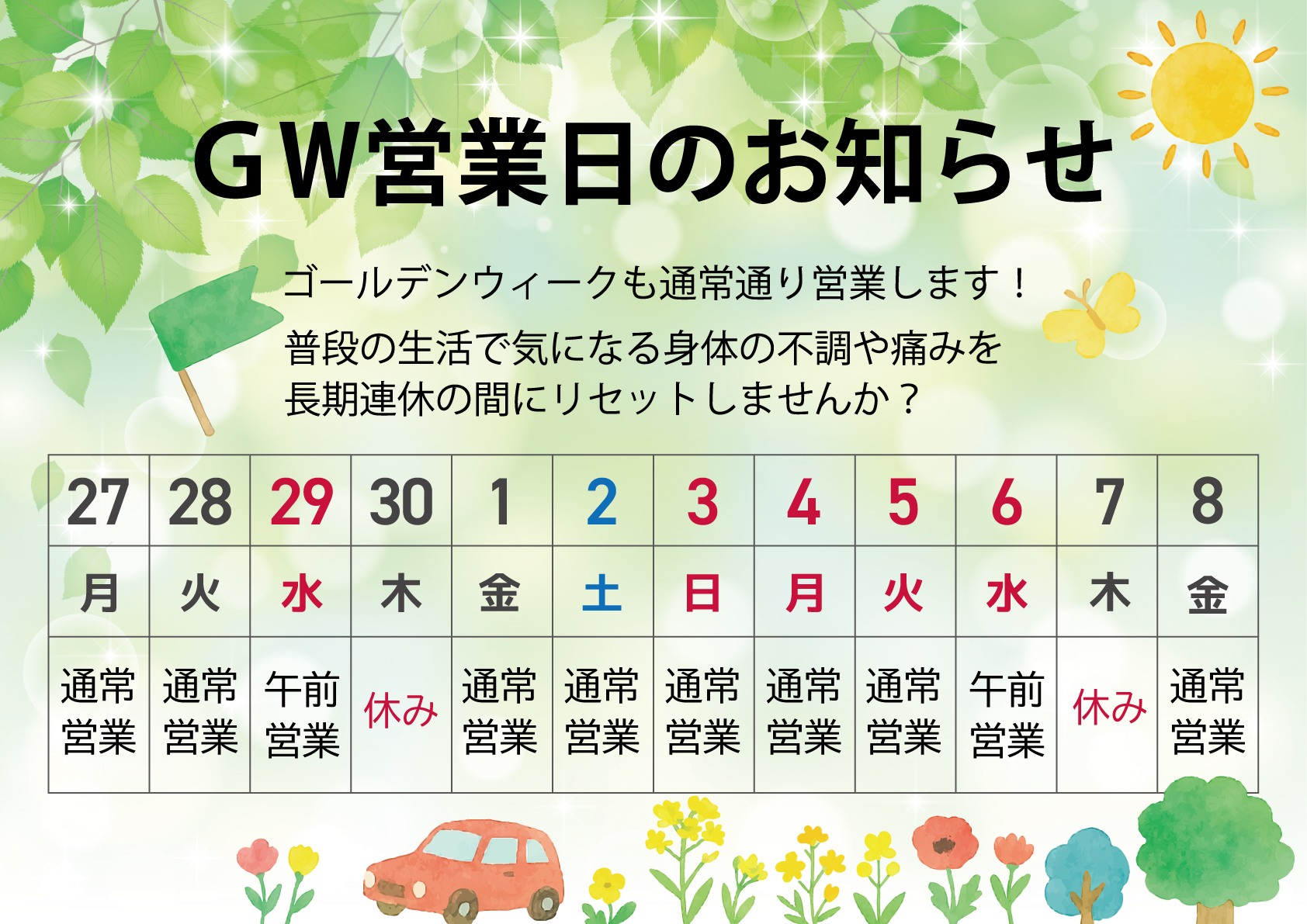 日頃の身体でお悩みの方は、ぜひ一度当院までお越し下さいませ。